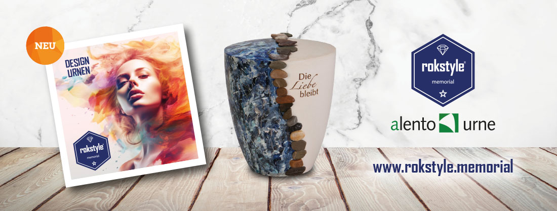Rokstyle Memorial steht nicht nur starkes Design oder Nachhaltigkeit, sondern auch für ein durchgängiges Design vom Urne, Grabstein und Grabschmuck.
